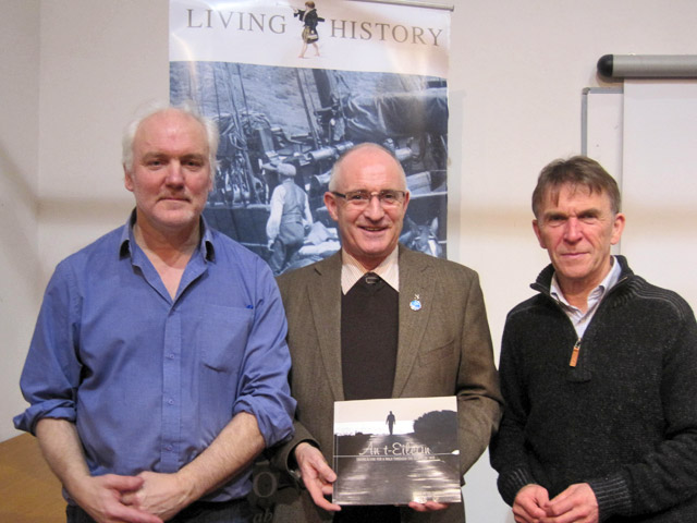 Dave, pictured here with Angus Peter Campbell and Cailean Maclean at the launch of An t-Eilean (December 2012)